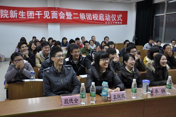 11月24日,我院新生团干见面会暨二级团校启动仪式在将军路校区6102教室成功举办。学院团委书记季娟,团委常务副书记袁琬欣,团委副书记赵星星和学生会主席殷德全出席了见面会,学院团委新团干和2013级新生团干参加了会议。