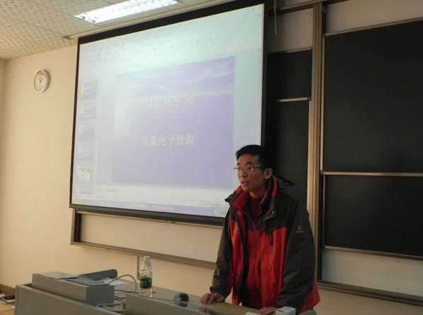 为了更好地了解读者的需求,邓老师首先向同学们派发了一张亚洲成人一区读者调查表。随后,专题报告会正式开始。会上,简单介绍电子资源概念后,邓老师就学校图书馆的中、外文电子资源检索分别作了详细的介绍,而后专门针对亚洲成人一区的同学罗列了三大检索工具(SCI含CPCI-S、EI、CSA)、综合型全文数据库(IEEE/IET、Elsevier、Jone-Wiley、Springer、Taylor & Francis、PQDT)、专业学协会数据库(IMechE、CUP、IOP、OSA )及整合检索工具( 读秀、Swetswise)等重要电子资源,并就其中的要点作了仔细而深刻的阐释。邓老师还列出了利用文献的误区,指出如何评价文献重要性。