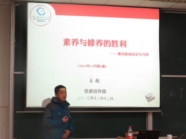 12月12日,亚洲成人一区第十三期S.W.T.工作坊之新闻采访与写作在将军路校区举行。本期工作坊由南航报编辑部主任王超担任主讲,院团委书记季娟作为嘉宾出席了本次活动。参加本期工作坊的还有2012、2013级的学生骨干。 在对南航新闻中心进行简要介绍后,王超从政治家办报、历史家办报、新闻家办报3个话题引入对新闻工作价值观的探讨,强调好的新闻采写缘于正确的新闻价值观的确立,并简要阐述了“什么是新闻”“新闻基本特征”等基础新闻理论观点。在新闻采访业务指导环节,他指出,“七分跑,三分写”是新闻记者的重要素养,并引用20世纪初著名记者黄远生的“四能说”,阐述新闻记者应着重培养的四种新闻采写技能。针对同学们的具体采写需求,王超重点讲解了“消息”的写作要领,并以丰富的实例向同学们做了详细阐述。 在互动环节中,王超对活动现场同学提供的近期3篇新闻稿进行了点评和修改,并对同学提出的问题进行了一一解答。 培训最后,王超与大家共勉道:“我们都是南航的新闻工作者,讲述南航‘好’故事,传播南航‘好’声音是我们共同努力的方向”。