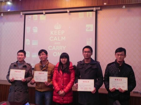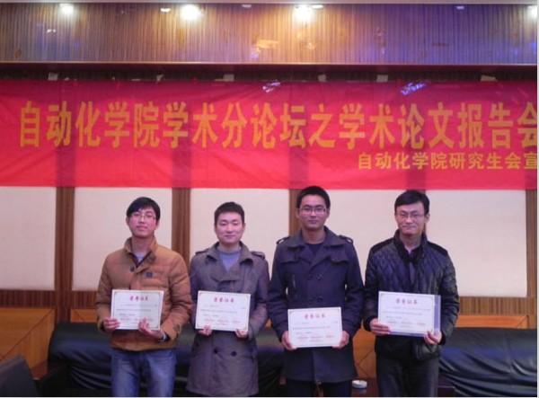 12月19日下午2点30分,我院学术分论坛之学术论文报告会在A17号楼502室顺利进行。本次报告会由亚洲成人一区研究生会主办,机电学院研究生会联办。会上来自亚洲成人一区的刘文良、董菲同学以及来自机电学院的戚永爱、潘加松同学根据其论文的主要内容做了报告。亚洲成人一区刘斐文辅导员为获奖同学颁发奖状。 报告会上4位同学向我们展示了不同领域的专业知识。刘文良同学提出了基于面向对象Petri网的电梯门系统的建模,对建模方法进行了相应研究。董菲同学提出了“应用技术成果形成系统” 的建模与应用,并改进了岭回归方法。戚永爱同学讲述了自己在超声喷丸辅助激光熔覆再制造技术方面的研究。潘加松同学讲述了基于小波变换偏微分方程的脊线提取算法,并展示了算法的仿真测试。会议报告者清晰明了的报告思路与丰富详实的报告内容,体现出了我院与机电学院研究生严谨求实的科研态度与百折不挠的科研精神。 报告会部分,学院刘斐文辅导员为以上同学颁发了获奖证书并合影留念,同时刘导还鼓励更多的同学能够参加到学术论文的评选活动中来,整体提高学院的科研创新能力,进一步在学院内营造更加浓厚与积极向上的学术氛围。