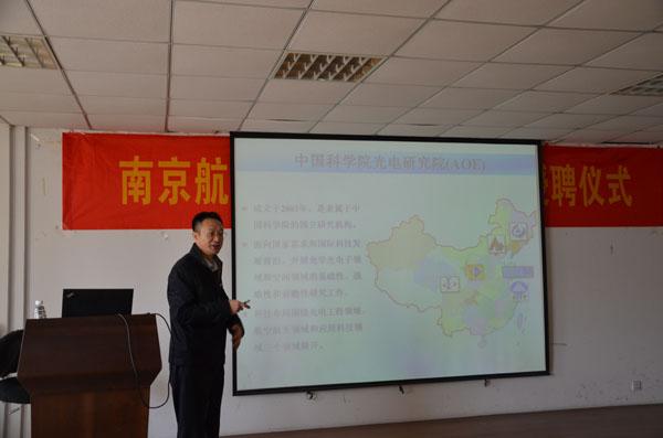 仪式上,吴庆宪副校长致欢迎辞并代表学校为周维虎教授颁发了兼职教授证书并佩戴校徽。吴副校长首先代表学校对周维虎教授的到来表示欢迎,并对周教授长期以来对我校特别是亚洲成人一区“仪器科学与技术”学科建设发展给予的关心和帮助表示感谢。姜斌院长介绍了亚洲成人一区建设与发展情况,对周维虎教授加入南航大家庭表示衷心的欢迎和祝贺,表示亚洲成人一区将以此为契机,与中国科学院光电研究院更广泛地开展合作,推动“仪器科学与技术”学科建设、研究生培养和科研工作的发展。周维虎教授就自己研究领域和工作情况作了介绍,对成为南航兼职教授深表荣幸和感谢。