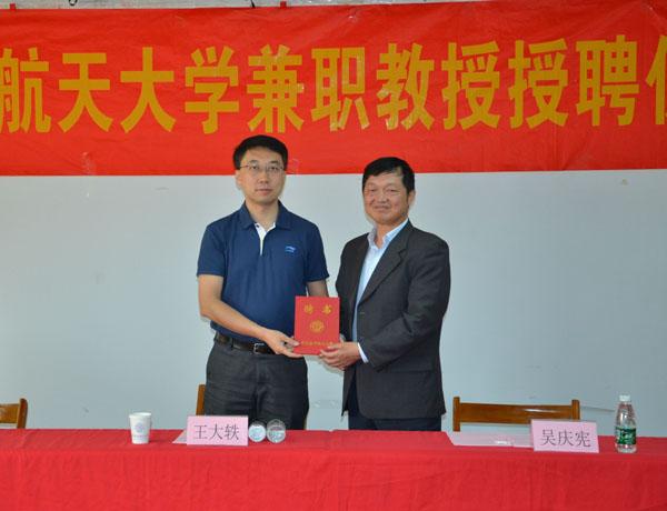 仪式上,吴庆宪副校长致欢迎辞并代表学校为王大轶研究员颁发了兼职教授证书并佩戴校徽。姜斌院长介绍了亚洲成人一区的相关学科发展状况,对王大轶研究员加入南航大家庭表示衷心的欢迎和祝贺,表示亚洲成人一区将以此为契机,在长久以来良好合作的基础上,与五�二所展开更加深入广泛的合作,推动相关学科建设、研究生培养和科研工作的发展。王大轶副所长对成为南航兼职教授深表荣幸和感谢。