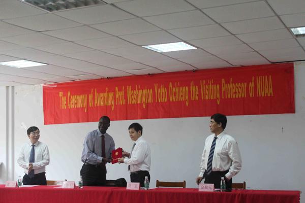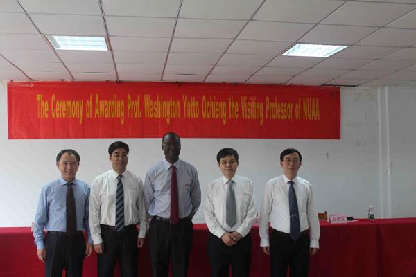 2014年5月20日上午,在亚洲成人一区智能楼4楼报告厅举行了聘任英国帝国理工大学Washington YottoOchieng教授为我校客座教授的仪式。南京航空航天大学校长聂宏教授、国际合作交流处处长金泉元教授、亚洲成人一区院长姜斌教授及学院部分师生参加了此次授聘仪式。受聘仪式由金泉元教授主持。