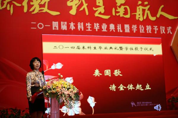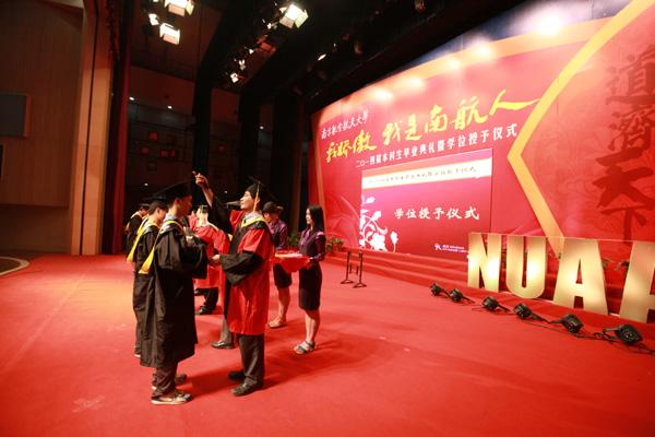 最后,典礼仪式在全体师生吟唱的南京航空航天大学校歌歌声中结束。“团结俭朴,唯实创新”是南航人的风格,“驭天马,牧群星”是南航人的境界,“智周万物,道济天下”是南航人的理想,2014届毕业生将永远铭记于心,感恩学院,感恩南航。