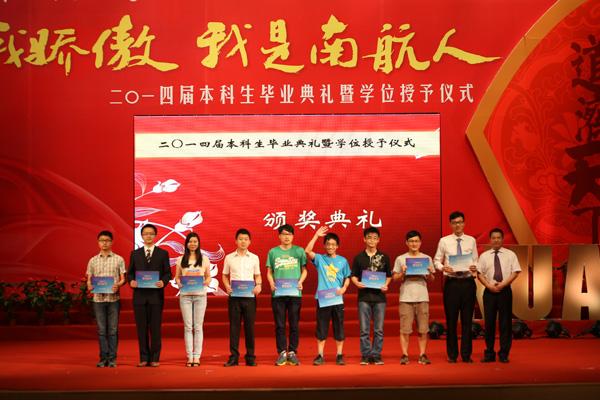 2014届毕业生一路走来,硕果累累,学院党委书记王勤教授宣读了我院荣获南京航空航天大学“先进班级”、“大学成就奖”、“优秀毕业生”、“十佳就业之星”等荣誉称号的个人和集体的表彰文件,并现场为获奖学生代表颁发了奖状。