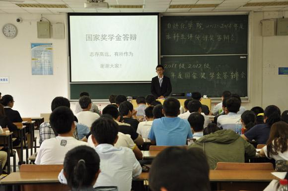 对重大奖项,评奖环节采用“院内公开答辩会”形式。我院对国家奖学金、年度(校长)特别嘉奖公开答辩进行了细致的安排和周密的考虑。在评委设置上,考虑到学院专业负责人、班主任等教学一线的老师。院党委副书记沈伯秀老师、工研班班主任周波教授、谢少军教授、自优班班主任王晶老师、马运东老师以及各年级其他班主任代表都作为评委老师参加了今年的公开答辩环节。其他评委组成包括辅导员代表和大一学生干部代表。因申报人数较多,年级推荐参加院内答辩的有47名。此次公开答辩会分为三个答辩会场。答辩方式为公开答辩,共分为自我展示、评委提问和现场评分3个环节。评委现场打分投票,现场公布学院评审结果。此次公开答辩不止是对参与答辩同学的锻炼和激励,答辩展示也是经验交流和标榜确立的过程,公开的形式也是对更广大同学提供了监督和受教育的机会。