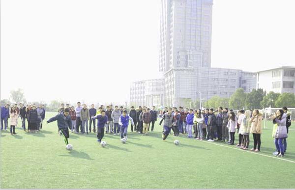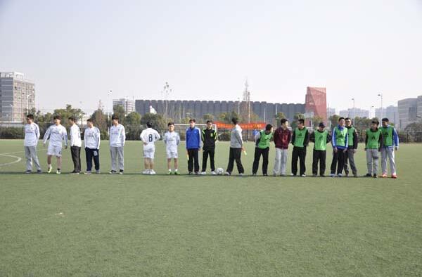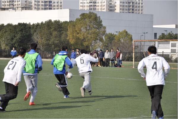 虽然天气寒冷,但操场上活跃的同学们让慧园足球场热闹非凡。在辅导员温暖致辞之后,年级的校园“十佳歌手”带来了动感活力的舞曲,院足球队成员表演了传球、颠球等技术。决赛前的趣味足球单项赛将现场气氛推向了一个小高潮。运球接力、夹抱球接力和女子点球赛充分激发了同学们的热情,加油呐喊声不绝于耳,而游戏中的笑点也是接连不断,令人捧腹。