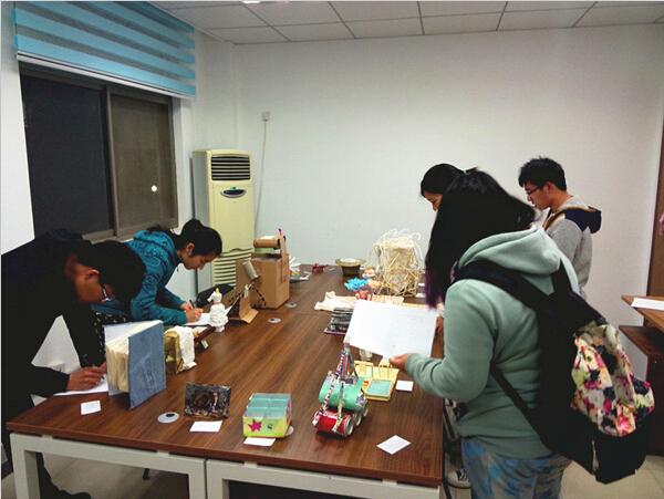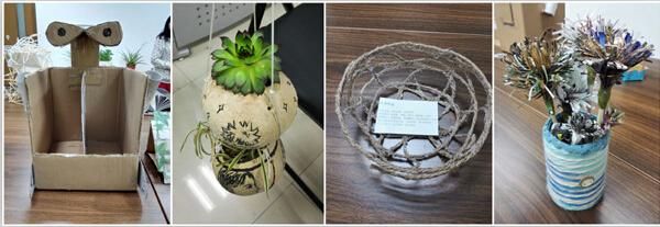 自3月26日大赛宣传开始,同学们通过微信平台以及宣传海报了解活动并积极参与报名,反响热烈。经过两周时间,选手们发挥创意,精心制作了别样的作品。工科生也有艺术感,他们可以用草稿纸、木筷造出设计感十足的鸟巢灯,可以用麻绳和浆糊制作充满田园气息的果篮,用废旧报纸杂志剪出绚烂花朵,把椰子壳变身小盆景,将易拉罐刮漆组合出直升机,利用牛奶瓶和废纸板奇妙拼装实用置物架,有散发着神秘气息的泡面盒制LED冷光灯,有鞋盒组合设计的“变形金刚”版小书架……比赛提交作品创意无限,应接不暇,让同学们为之惊叹!