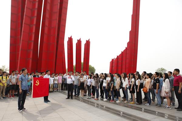 参观结束,全体党员在胜利广场重温入党誓词,这也是2015届毕业班党员离校前“最后一次党日活动”的重要内容。在场毕业班党员在辅导员的陪伴下,面向党旗整齐站立,由张松祥领誓,全体宣誓人员用语言宣告成长,用行动表示决心,铿锵坚定的声音久久回荡,全体入党积极分子肃然起敬,列队观摩了整个过程,这个过程的设置也旨在对党校学员进一步端正入党动机教育。