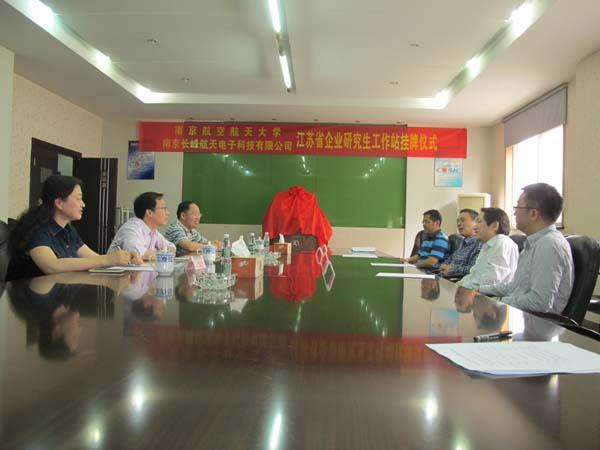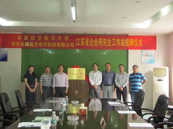 2015年05月25日,南京航空航天大学亚洲成人一区赖际舟副院长与企业联系导师盛守照教授学院教学办主任一起来到南京长峰航天电子科技有限公司,为南航大与长峰航天共建江苏省研究生工作站揭牌。长峰公司副总经理陆晓路、技术质量部主任李永明部出席仪式,仪式由总经理助理钱宇光主持。