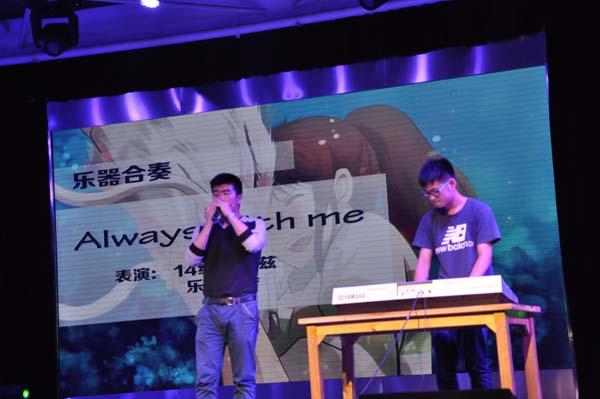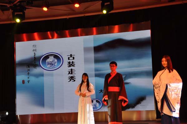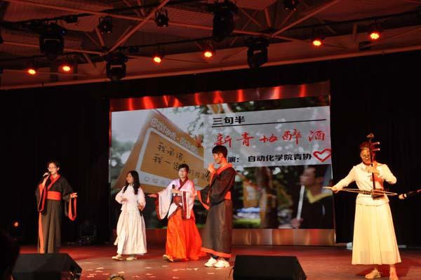 刘建成书记为晚会致辞,他回顾了亚洲成人一区的发展历程,言语间满是浓厚的期盼。晚会以追忆开篇,赖际舟副院长一首《光阴的故事》,带观众走向记忆里最深最美的时光。“Always with me”,在乐器协会的这首绝伦的众瑛合奏后,大使团的美女帅哥身着汉服款款走来,仿佛让观众置身洪武年间那段静默优雅却惊艳不朽的时光。14级国防生也不乏艺术的热情,一曲《杯子歌》清脆明快,晚会走向了下一篇章――重逢。