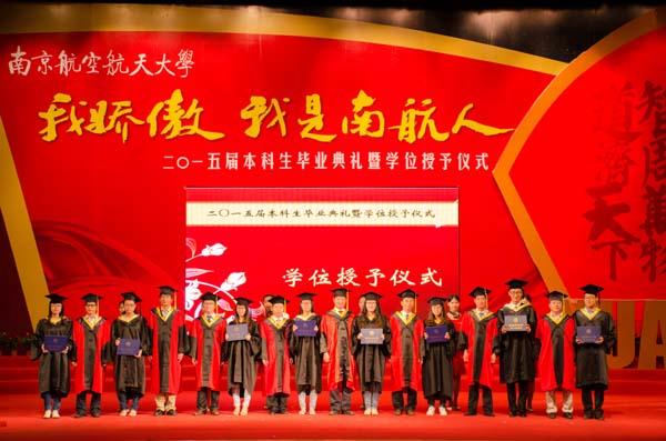 2015届毕业生一路走来,硕果累累,学校副校长吴庆宪教授宣读了我院荣获南京航空航天大学“先进班级”、“大学成就奖”、“优秀毕业生”、“优秀学生干部”和“优秀学生奖学金”荣誉称号的个人和集体的表彰文件,并现场为获奖学生代表颁发了奖状。
