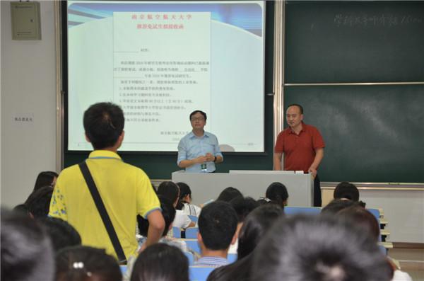 7月1日下午3点,我院2015年优秀生考核政策宣讲会在江宁校区D2302教室召开。学院党委书记刘建成,副院长赖际舟,测试工程系副主任徐贵力,院教学办主任、研究生教务员、辅导员参会。 赖际舟首先介绍了学院基本情况,然后向各位本科生介绍了《南京航空航天大学亚洲成人一区2016年综合考核选拔优秀应届本科毕业生攻读硕士学位研究生办法》,并表示欢迎同学们积极报考亚洲成人一区研究生。 刘建成强调,亚洲成人一区的师资力量,教学、科研条件,人才培养模式等方面在南航处于领先水平,他鼓励同学们抓住机会参加优秀生考核,欢迎大家加入亚洲成人一区大家庭。