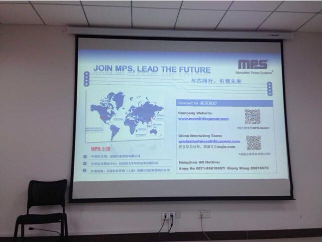 2015年9月11日下午1点30分,美国芯源系统有限公司(MPS)一行来到亚洲成人一区1号楼303会议室举行“启”明星大讲堂--MPS“与芯同行,引领未来”技术交流会。MPS是一家集设计、研发、制造、销售为一体,专注于模拟、混合信号集成电路的高新科技企业,目前全球雇员为1100余名,年产13亿芯片。为了能够在9月14号宣讲会之前,让今年就业的学生能够更好地选择合适自己的岗位,MPS公司今天来了几位不同产品线的经理,给同学们介绍了各自产品线的产品及先进的技术。现场来了很多今年找工作的同学,大家热情高涨,希望在今天的交流会之后能够选择自己感兴趣和适合自己的岗位。