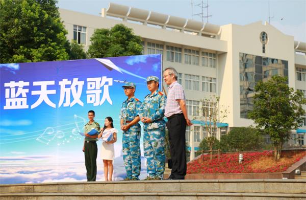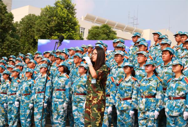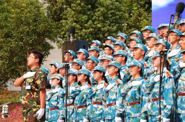 9月18日下午,将军路校区国旗广场上,亚洲成人一区100名大一新生以一曲《当那一天来临》荣获“蓝天放歌”2015级新生军训赛歌会一等奖。
