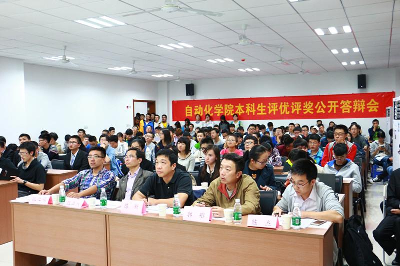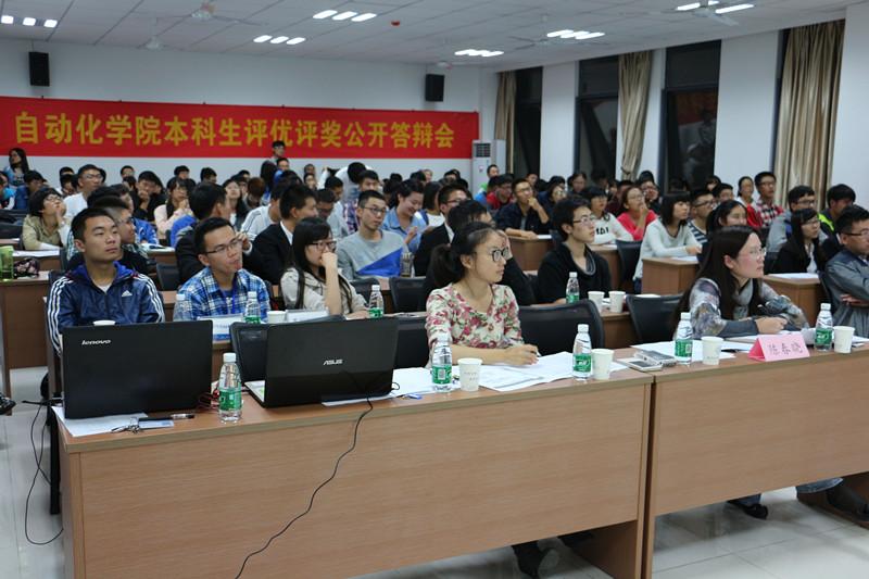 10月8日晚,我院本科生2014-2015年度院级评优评奖公开答辩会在将军路校区亚洲成人一区1号楼303、403和511会议室分三组进行。学院教学副院长王晓琳老师,党委副书记沈伯秀老师,院长助理张之梁教授,院长助理宋晓峰教授,12、13、14级班主任代表,各年级辅导员和学院机关老师等参加了此次答辩会并担任评委。