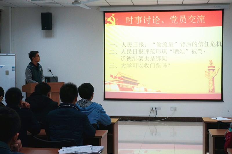 2015年12月1日,亚洲成人一区本科2013级第二党支部在自动化院楼303报告厅举行本学期的第一次党员沙龙。由于大三学生学习压力较大,空余时间少,本学期的党员沙龙将原有的电影推荐、好书推荐、时事点评三个模块浓缩为时事讨论模块;沙龙举办的意义也有所改变,除了党员同志们交流思想外,邀请了年级入党积极分子参与讨论,以此加强对入党积极分子的日常考核。