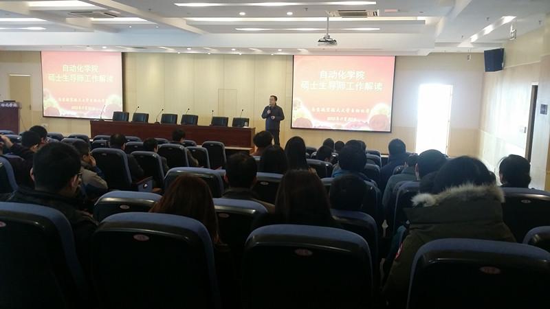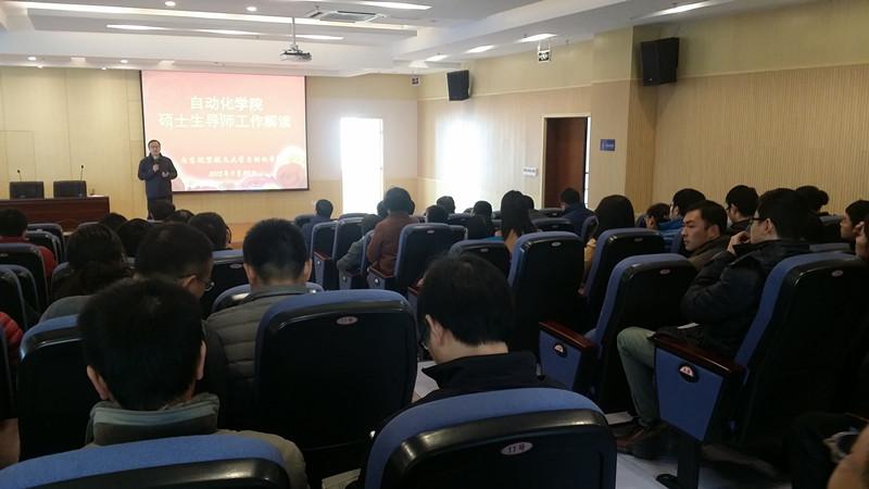 2015年11月的最后一天,在学院511报告厅,按照学院研究生工作的计划安排,学院主管研究生工作的副院长赖际舟教授对学院全体导师和准备申报导师的老师进行了一年一度的导师培训工作。学院没有课程讲授任务和出差任务的老师都参加了培训。