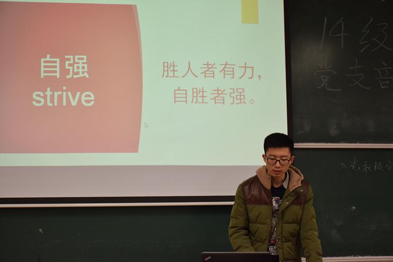 之后,会议在亚洲成人一区14级党支部书记冯攻关同志的主持下,进入了自由交流的阶段。很多同志为了交流不仅认真准备了演讲稿,更是制作了精致的PPT,用图文并茂的方式向大家介绍相关的知识,发表自己的见解。三位党员同学都就“勿忘国耻,振兴祖国”这一话题和大家交流了意见,他们向大家列举了大量的历史事实,阐述了应如何以史为鉴,在当今奋发图强的观点。他们慷慨激昂的演讲赢得了在座同志的掌声。会议临近结束时,在座的一位入党积极分子就自己的看法即兴发表了演讲,他结合当今中国存在的问题,提出我们在热情建设富强中国的同时,应该注意到发展中存在的问题并时刻保持清醒。他的讲话对本次会议起到了画龙点睛的作用。
