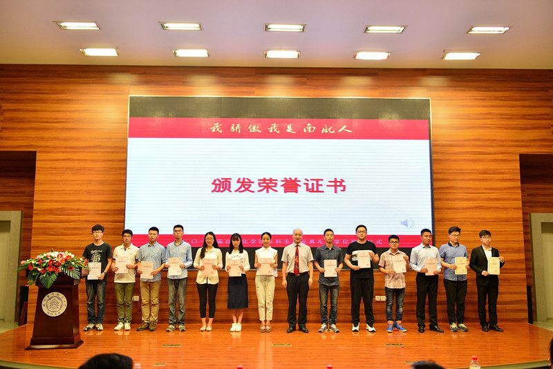 雄壮的国歌声拉开了典礼的序幕。四年白驹过隙,2016届毕业生收获颇丰。学院副院长王晓琳宣读了我院荣获南京航空航天大学“先进班级”、“大学成就奖”、“优秀毕业生”、“三好学生”、“优秀学生干部”和“优秀学生奖学金”荣誉称号的个人和集体名单,刘建成为获奖学生代表颁发了奖状。