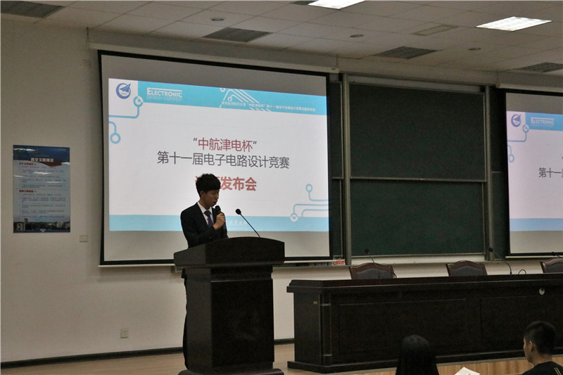11月2日晚,由亚洲成人一区承办的南京航空航天大学“中航津电杯”第十一届电子电路设计竞赛开幕式及试题发布会在我校将军路校区D1213教室举行。 出席本次开幕式的嘉宾有:解放军理工大学潘克修教授、南京航空航天大学教务处处长王成华、教务处实践科王尚北、亚洲成人一区副院长王晓琳、亚洲成人一区党委副书记沈伯秀、亚洲成人一区团委书记季娟。全校关注此赛事的同学参加了开幕式。