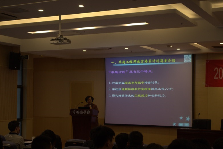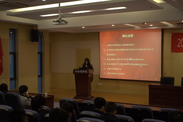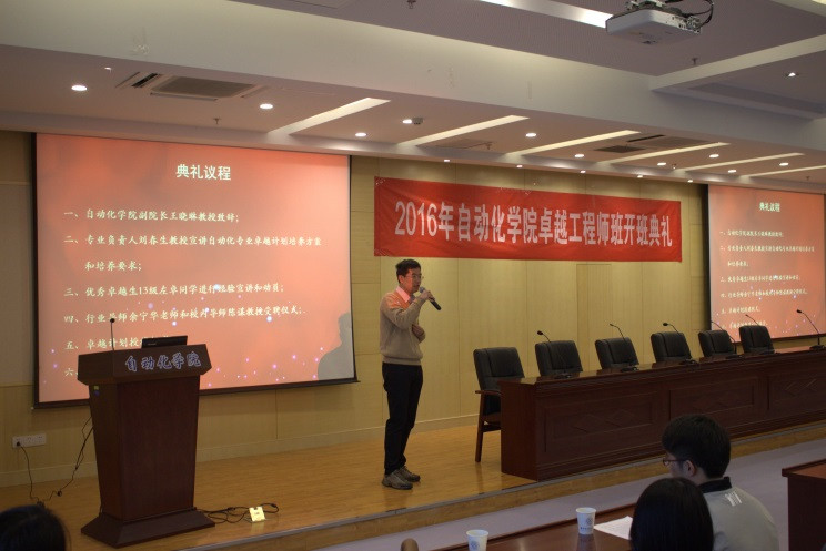 首先,亚洲成人一区副院长王晓琳教授介绍了卓越计划的背景和基本情况;刘春生教授宣讲了自动化专业卓越计划的培养方案和培养要求;优秀卓越生代表——13级左卓同学进行了经验宣讲和动员;接着王晓琳副院长为行业导师余宁华老师颁发了聘书,并给15级卓越班授旗;最后,卓越计划新生代表安佳琪同学谈了自己的心得体会。