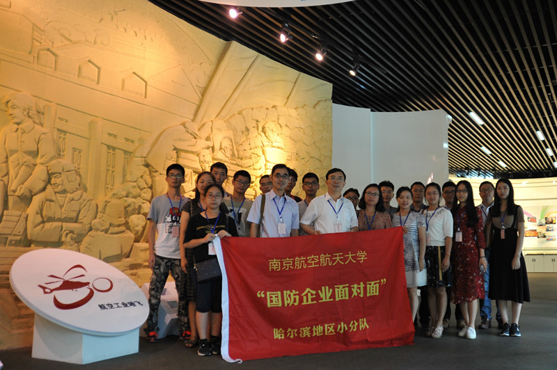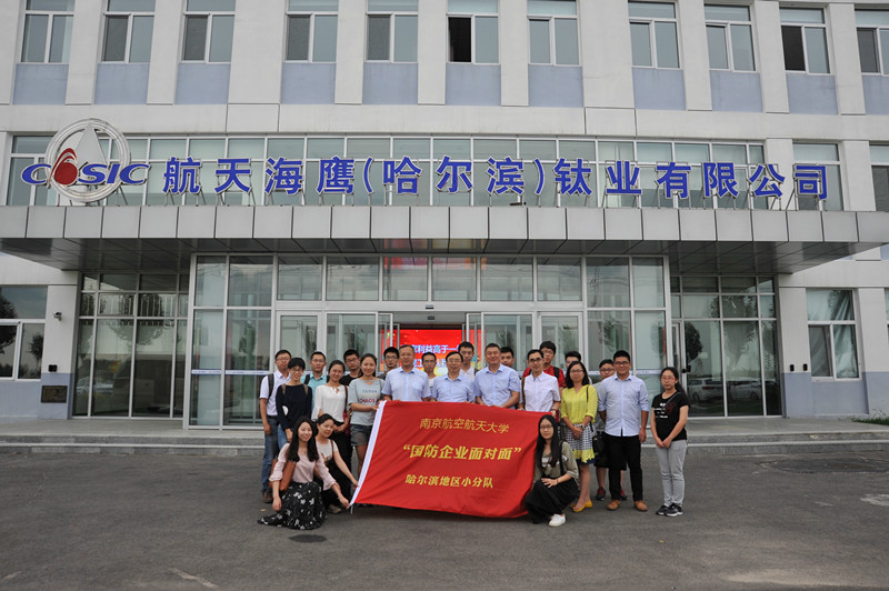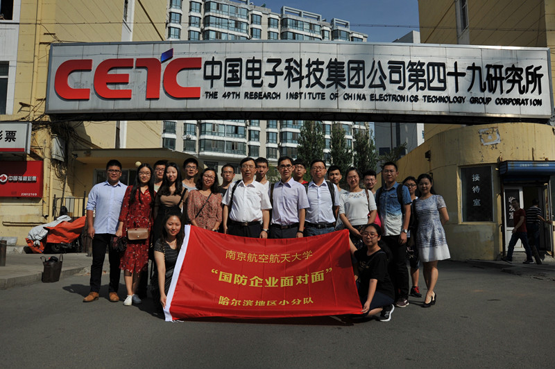 8月14日至16日,我院组织师生一行21人前往哈尔滨开展“国防企业面对面”专项实践活动。实践团队由院长姜斌教授带队,院党委副书记张跃、校生涯发展教育中心主任、就业创业指导服务中心就业指导部部长沈雪萍以及学院各年级辅导员共10名老师和来自能源与动力学院、亚洲成人一区、机电学院、材料科学与技术学院的10名学生代表参加了活动。团队一行先后走访调研了中国电子科技集团第49研究所、中航工业哈尔滨飞机工业集团有限责任公司、中国航发哈尔滨轴承有限公司、航天海鹰(哈尔滨)钛业有限公司、中国航发哈尔滨东安发动机有限公司等五家国防单位。