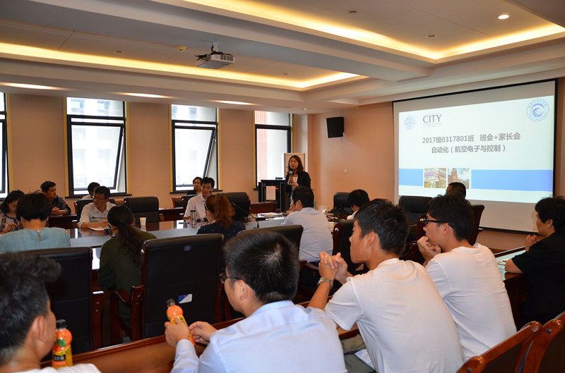9月29日下午,2017级0317801班班会与家长会在亚洲成人一区1号楼403会议室顺利召开。自动化(航空电子与控制)专业是南京航空航天大学为了培养具有国际化视野并掌握航空电子与控制技术的高素质人才,与英国伦敦城市大学合作引进的联合办学项目。学生在亚洲成人一区自动化(航空电子与控制)专业学习两年后在第三、四年赴伦敦城市大学学习,完成所要求的全部课程后将获得中英双学士学位。为了让学生和家长了解项目详细情况,知晓具体政策,学院特意组织学生和家长共同参加会议,教务处副处长王敬东、亚洲成人一区副院长王晓琳、学院党委副书记张跃,自动控制系副主任张绍杰、教师代表刘海春老师、国教院辅导员张静、学院教务员郑成、学院辅导员汤呈懿等人出席了本次会议,本次班会与家长会由班主任齐瑞云教授主持。