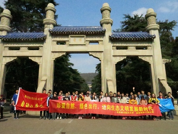 2017年11月12日,南京航空航天大学亚洲成人一区研究生会与南京信息工程大学大气科学学院研究生会,在南京钟山风景区共同举办了“紫气东来,金陵花开”十九大学习交流活动。活动旨在学习和交流十九大精神,倡导珍爱自然,绿色出行的理念,共同迈向生态文明发展新时代,同时巩固两个学校学生之间的友谊,丰富课余生活,拓宽科研思路,促进双方在交流中共同进步。 12日上午,双方抵达灵谷寺大门,活动就此拉开序幕。两校研究生混合组合分为四个小队,同时向中山陵出发。各队队员们都非常活泼,团队氛围十分融洽。抵达后,为了宣传社会主义生态文明观,同学们在景区拉起“珍爱自然,绿色出行,迈向生态文明发展新时代”的横幅,此项活动得到了游客和市民们的一致赞赏和关注。