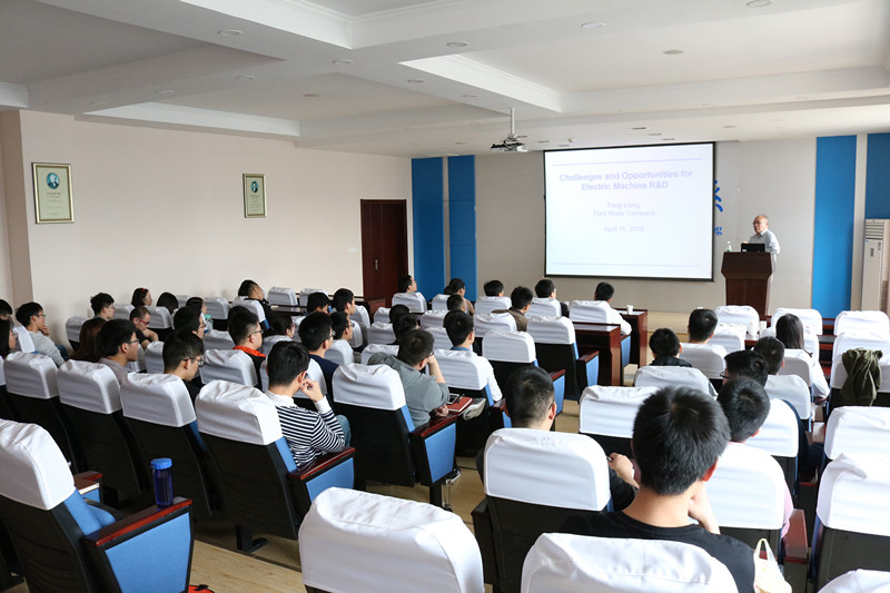 4月11日, Liang Feng博士在亚洲成人一区3号楼报告厅做“Challenges and Opportunities for Electric Machine R&D”学术报告,亚洲成人一区近百名师生参加了报告会。报告从新能源汽车驱动电机的基本原理、特性和要求出发,分析新能源汽车驱动电机的转矩-功率特性,提炼出新能源汽车驱动永磁电机的高效率、转矩密度提升及振动噪声等核心问题,并介绍了福特公司研发团队在效率提升及转矩脉动抑制等领域取得的诸多研究成果和创新思想。报告会持续3个多小时,极大拓宽了师生对于新能源汽车驱动系统的认识和视野。