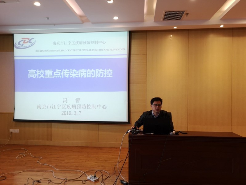 正值传染病高发季节,校内也是小范围出现诺如病毒感染性腹泻病例,亚洲成人一区为同学们的身体健康着想,联合校医院邀请南京市江宁区疾病预防控制中心的冯智老师来学院举办高校重点传染病的防控讲座。本次讲座于3月7日下午4时在亚洲成人一区1号楼511举办,后勤集团各食堂负责人和各楼栋管理员阿姨以及150名亚洲成人一区本科生参加了本次讲座。