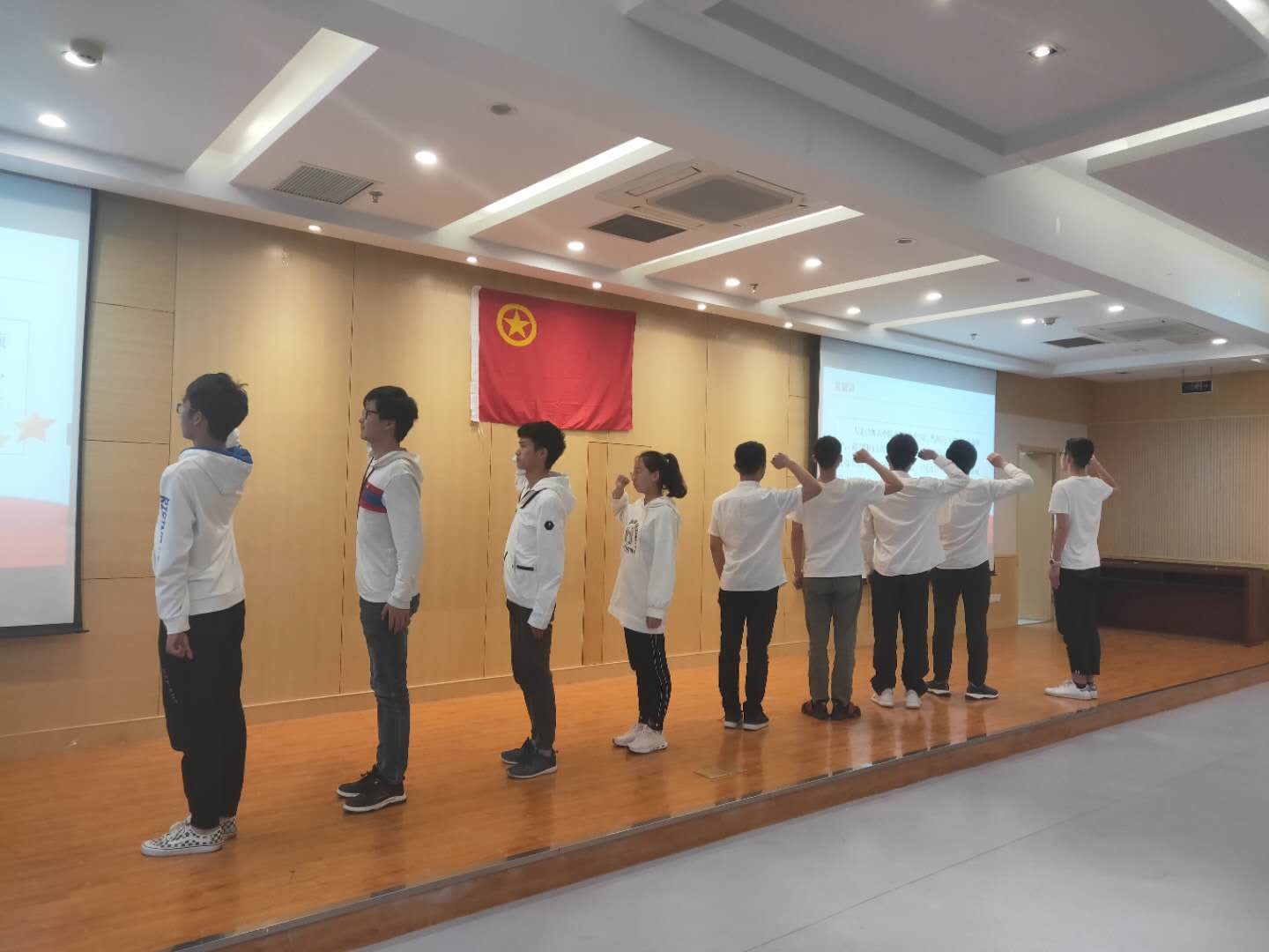 2019年4月28日下午四点,亚洲成人一区举办“新青年与五四运动”素养公开课暨新团员入团仪式,亚洲成人一区团委书记刘斐文、2017级本科生辅导员侯新闻、2018级本科生辅导员杨兴旺、汪明锐以及各班班长及团支书参加了本次活动。活动初始,学院为8名新入团团员举办了入团仪式,老团员为新团员佩戴了团徽并带领新团员进行了宣誓。