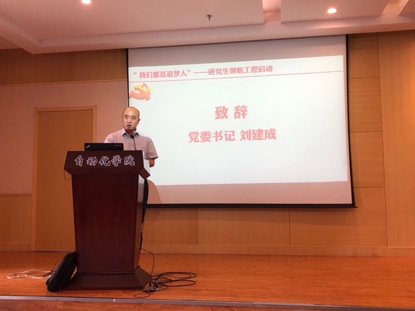 首先,党委书记刘建成致辞。刘书记高度肯定了本科生领航工程在思想引领、学风建设等方面取得的良好成效,阐述了举办研究生领航工程的重要意义,并借习总书记在纪念五四运动100周年大会上的重要讲话,寄语学生党员,不忘初心、砥砺奋进,收获梦想,全体参会人员备受鼓舞。
