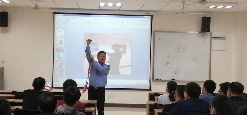 孔老师结合国内外各种火灾消防安全案例,针对大家消防意识普遍薄弱、缺乏基本逃生技能等问题,以大量的图片和事实阐述了消防安全的极端重要性,并结合校园火灾讲解一下校园内、实验室安全隐患如何排查,用电用气安全,出行交通车辆安全,汽车自燃,地震逃生知识,一旦发生重大安全事故如何紧急疏散人员逃生。孔老师还向大家介绍并演示了消防安全工具的使用方法,参会人员纷纷表示受益匪浅。