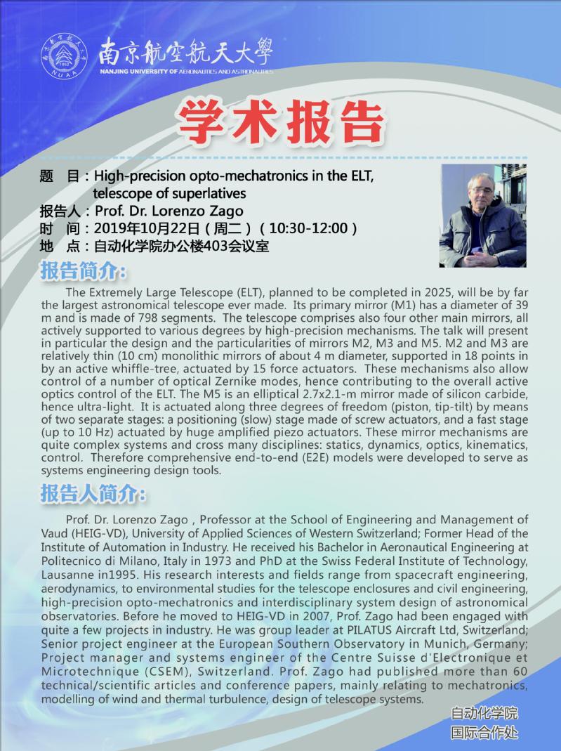 学术报告:High-precision opto-mechatronics in the ELT, telescope of superlatives