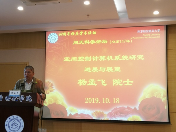 10月18日,中国科学院、国际宇航科学院的杨孟飞院士,应邀访问南京航空航天大学,在亚洲成人一区做了“问天”科学讲坛第147场学术报告——“空间控制计算机系统研究进展与展望”。本次报告会由南京航空航天大学副校长姜斌教授主持,亚洲成人一区院长江驹教授、副院长陈谋教授,航天学院常务副院长陈金宝教授,南航科学秘书长刘双丽女士等百余名师生聆听了报告会。