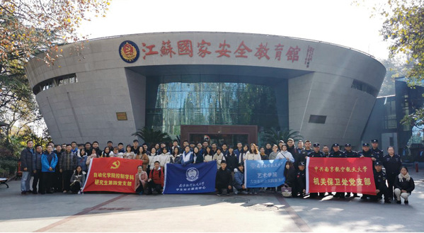 图1 自控系教师导航党小组、控制学科研究生第四党支部(导航方向)、学生安全服务中心党支部、机关保卫处党支部、艺术学院党支部共同参观江苏国家安全教育馆