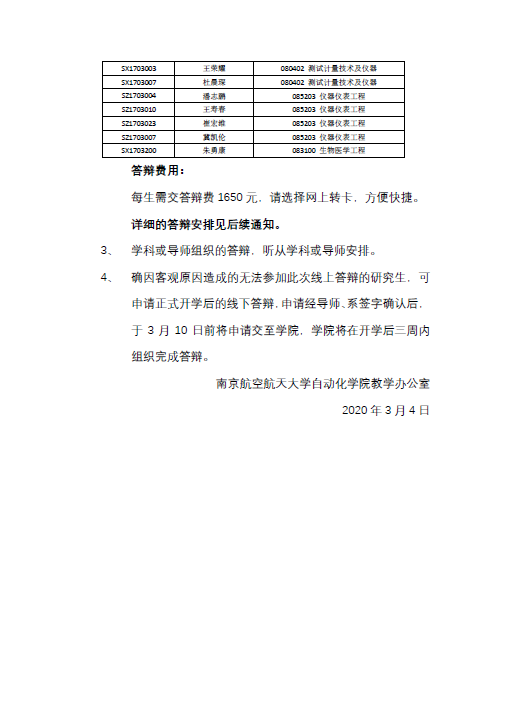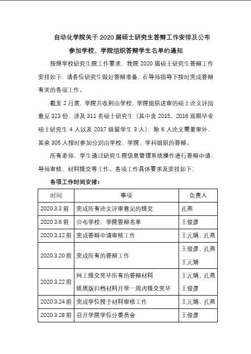 【研究生学位】亚洲成人一区关于2020届硕士研究生答辩工作安排及公布参加学校、学院组织答辩学生名单的通知