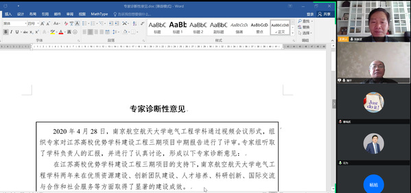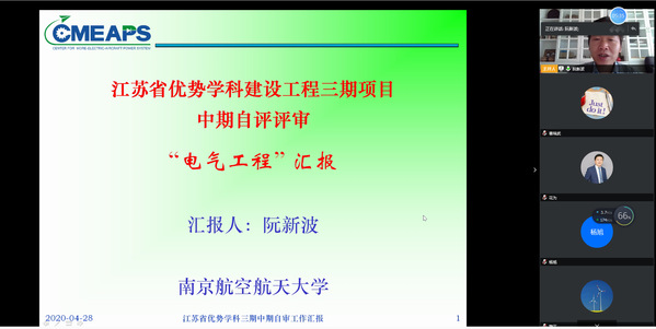 2020年4月28日上午,南京航空航天大学组织专家对江苏高校优势学科建设工程三期项目电气工程学科进行了中期评审。评审会通过视频会议形式进行,评审专家组组长由河海大学鞠平教授担任,专家有浙江大学何湘宁教授,西安交通大学杨旭教授,东南大学花为教授和中国矿业大学陈昊教授。亚洲成人一区电气工程系阮新波教授、胡海兵教授和曹瑞武副教授参加汇报。