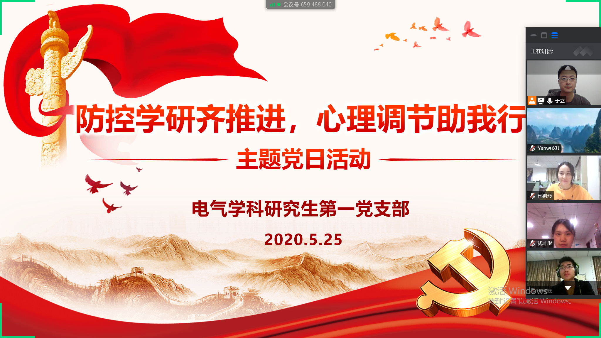 全国两会的顺利召开,展示了党中央、国务院统筹抓好疫情防控和经济社会发展的坚强决心,极大鼓舞了全国上下团结一致、共克时艰的信心和勇气。亚洲成人一区电气学科研究生第一党支部全体师生热切关注全国两会的召开,结合研究生自身疫情防控与研学生活中的心理调控方式方法,5月25日,第一党支部开展了一场以“防控学研齐推进,心理调节助我行”为主题的线上党日活动。支部党员、发展对象、积极分子共计28人参加了本次活动。