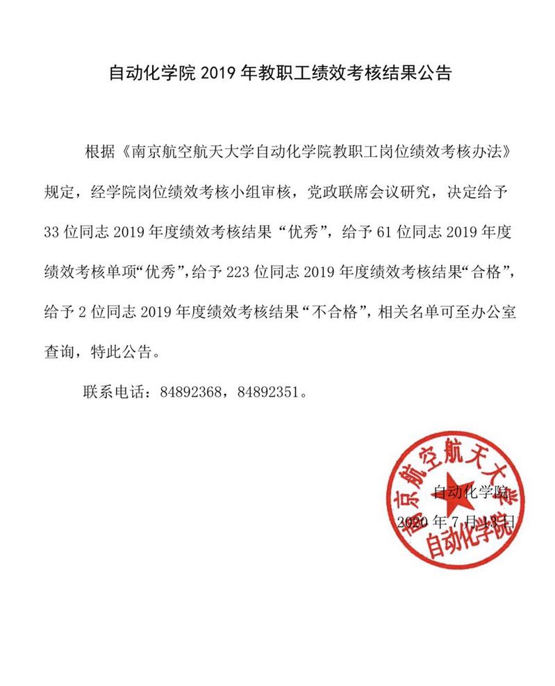 亚洲成人一区2019年教职工绩效考核结果公告