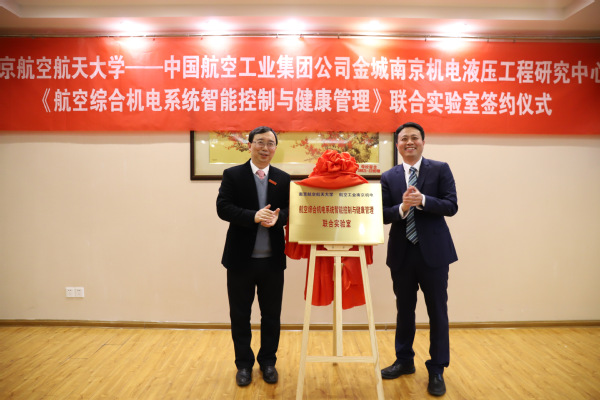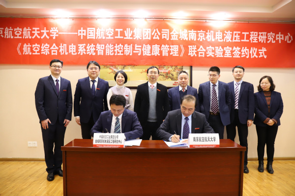 3月17日,我校与中国航空工业集团公司金城南京机电液压工程研究中心(以下简称航空工业南京机电)在将军路校区亚洲成人一区举行“航空综合机电系统智能控制与健康管理”联合实验室的签约仪式。航空工业南京机电副总经理、总工程师陈丽君,人力资源部部长王海波,液压与作动系统部部长葛益波,环控系统部部长杨昌宝;我校副校长姜斌,发展联络部部长兼党政办副主任李君,科学研究院副院长顾冬冬,亚洲成人一区党委书记李文雷,亚洲成人一区院长江驹及校企双方有关负责同志出席签约仪式。江驹和陈丽君分别代表双方签署联合实验室协议;姜斌和陈丽君为联合实验室揭牌。李文雷主持签约仪式。