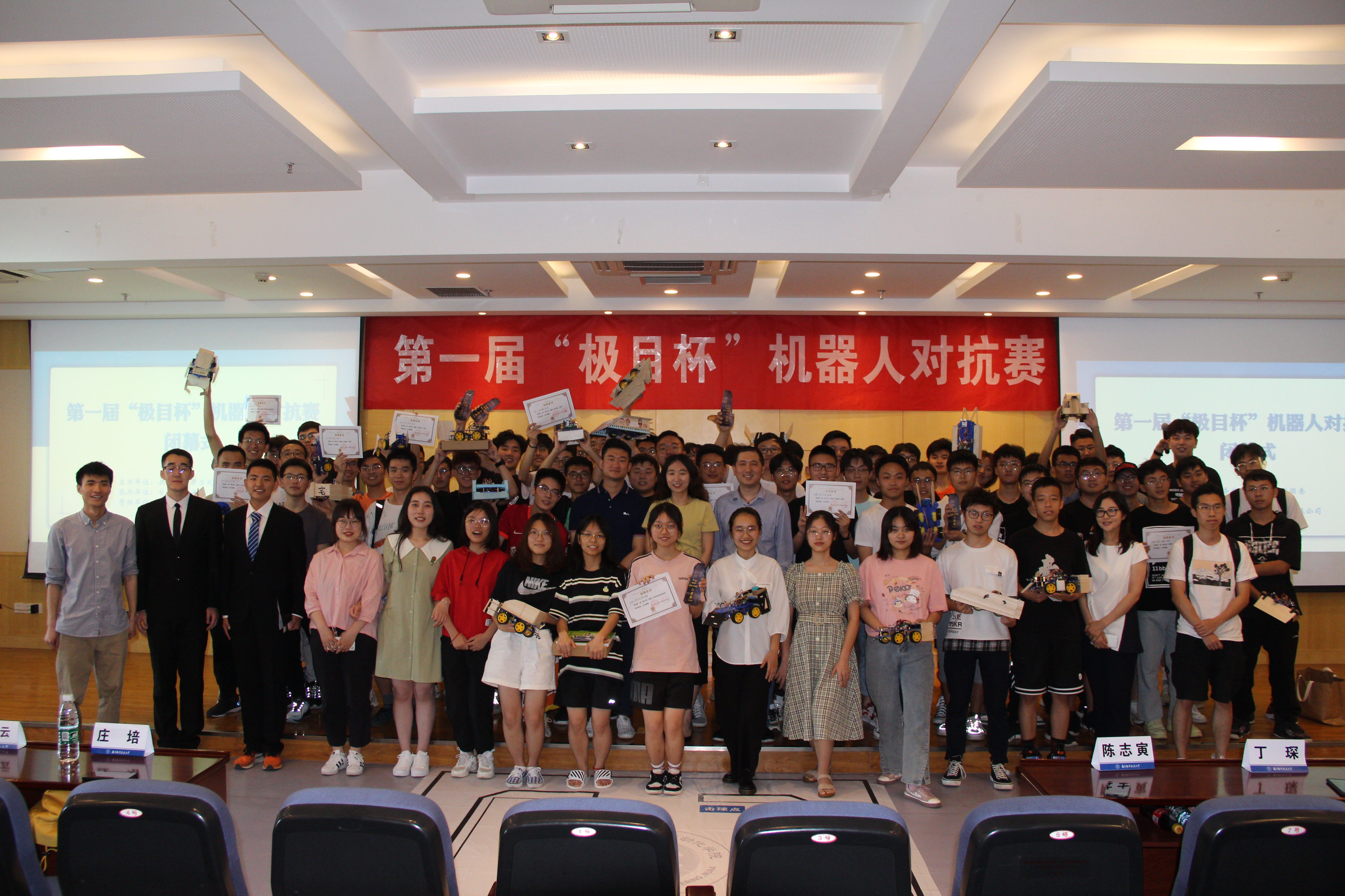 6月6日,第一届“极目杯”机器人对抗赛决赛及闭幕式在亚洲成人一区一号楼511报告厅隆重举行。极目机器人中国区研发(软件)负责人陈志寅、极目机器人人力资源总监庄培、校团委副书记、亚洲成人一区党委副书记丁琛、亚洲成人一区团委书记陈慧云等嘉宾老师出席本次比赛。