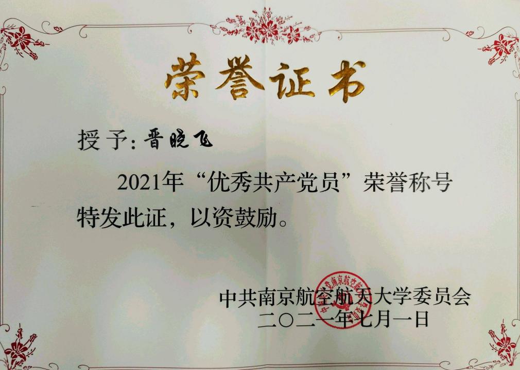 团队目前共有共产党员17人,其中教师党员3人,博士后党员3人,学生党员11人。自立项以来,团队不断加强党性修养,积极学习党史党章,在实验室布置党史学习墙。团队思想觉悟高,不断学习党和国家新思想、新政策,在科研之余经常组织师生共建党日活动,如参观大金山国防园等。团队定期组织观看《高山下的花环》、《横空出世》等红色电影,并由预备党员和积极分子等分享观影感悟,既能让大家在繁重的科研任务之外放松心情,又能学习老一辈革命家、科学家不怕流血牺牲、迎难而上的精神,号召团队师生不忘历史、警钟长鸣,不忘初心,科研报国。团队成员中多位同学获得院校级别荣誉,其中团队学生负责人晋晓飞博士生荣获2021年南京航空航天大学优秀党员,朱柔君硕士生荣获2021年亚洲成人一区优秀党员。