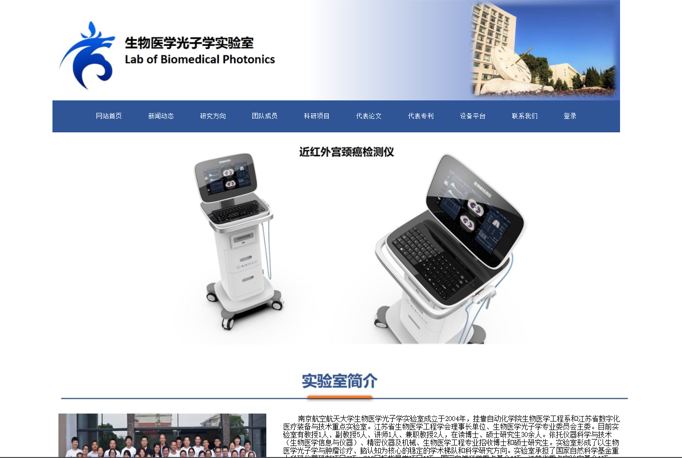 南京航空航天大学生物医学光子学医工结合团队成立于2004年,挂靠亚洲成人一区生物医学工程系和江苏省数字化医疗装备与技术重点实验室,是国家视觉与听觉健康产业技术创新联盟副理事长单位、江苏省生物医学工程学会理事长单位。汇聚了以钱志余教授为主导师的一大批国内生物医学工程科学领域专家和中青年拔尖人才,现有教授1人、副教授6人、讲师1人、博士后2人、兼职教授2人,在读博/硕士近40人。实验室形成了以生物医学光子学、肿瘤精准治疗、脑认知功能研究及生物医学仪器研发为核心的学术梯队和科研方向。实验室与国内著名科研队伍建立了长期合作的关系,主要包括:湖南省肿瘤医院(微波消融)、中科院深圳先进技术研究院(医疗器械)、深圳大学(生物光学)、东南大学中大医院、南京军区总医院医学影像科(fMRI/PET/XCT)、中国药科大学(药效研究)、南京市脑科医院(脑功能认知)、厦门大学(光声成像平台)、南京鼓楼医院(颅脑损伤)。同时,本实验室与国内外生物医学光子学实验室建立了广泛的联系和合作。