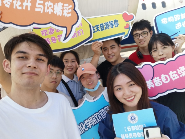 活动最后定格在天目湖校区停机坪上的两架客机前,两位老师进行了线上答疑,新生们用弹幕积极地进行提问“运动场馆都有哪些”、“食堂开到几点”、“返校以后要做核酸检测吗”……两位老师耐心地为同学们解答关于校区、开学和报道的问题。
