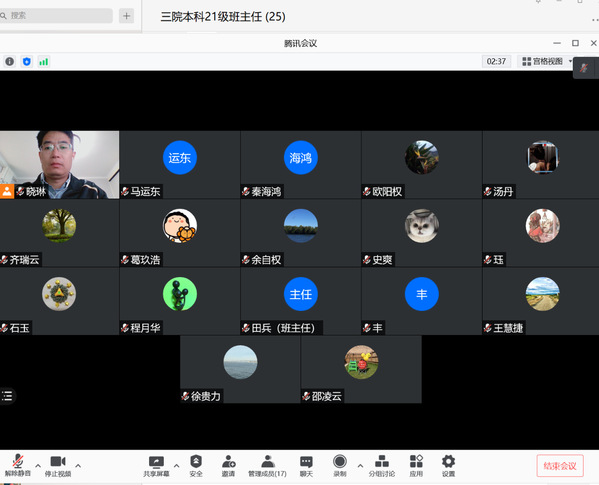 10月26日晚上,在新生班主任线上会上,王晓琳先对近期天目湖校区教学工作进展情况进行介绍,他肯定了各位新生班主任在工作环境还未完全成熟的情况下,克服困难积极投入到班主任工作中的可贵精神,展示了学院一贯的以生为本的育人理念。新生班主任要把抓好学生思想、心理健康教育工作作为基本功,把对学生的关心爱护全面贯彻到工作的各个方面,及时跟进了解学生的学习、生活动态和感受,关注学生的心理和情绪波动,及时给予疏导和帮助。特别是对于因为疫情不能如期到校的新生,要主动积极为他们提供健康指导、学习支持和心理辅导,充分考虑开学后延期返校学生的实际需要,让居家的学生可以在家如在校。