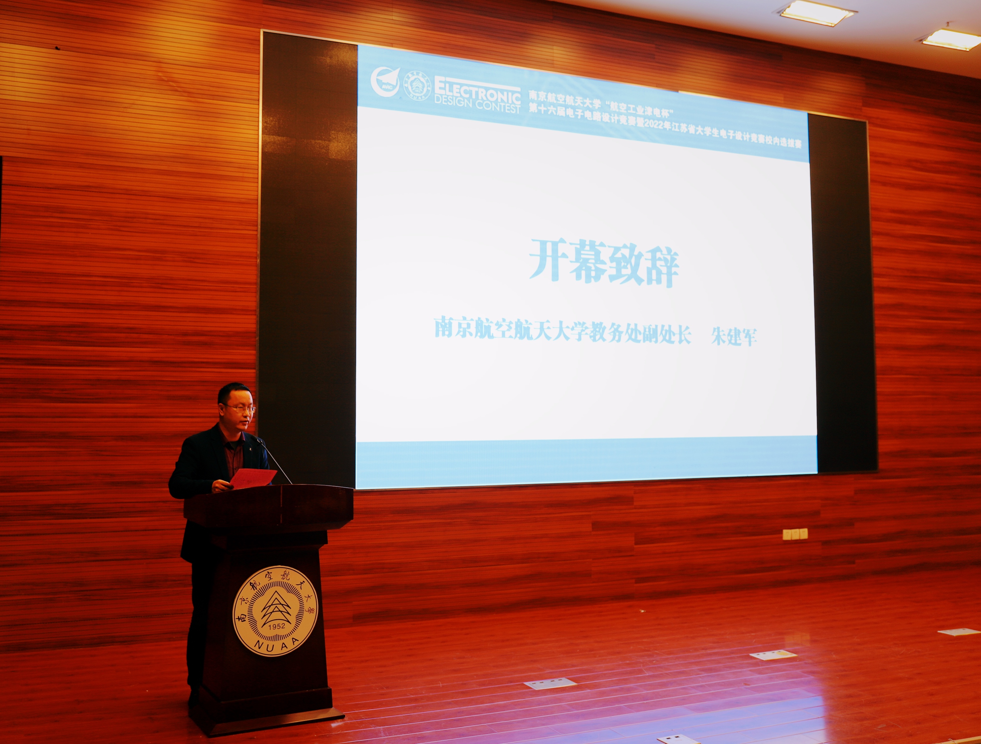 会议初始,主持人丁琛为同学们介绍了电赛的整体情况,校电赛用它专业的科技水平和公平公正的竞赛原则创造了无数辉煌,同时也为我校培育出一批活跃于各级比赛中的优秀人才。随后朱建军致开幕词,他向同学们介绍了电赛十六年来规模不断壮大、体系不断完善的历程,为参赛同学们搭建了一个勇于实践和敢于创造的舞台。在建党100周年之际,希望同学们以此次大赛为契机,激发创新灵感,发扬工匠精神,勇于改革创新,脚踏实地奋斗,不断将“小我”融入到祖国的“大我”中,为国家“三航”事业发展、“两个强国”建设贡献青春力量。