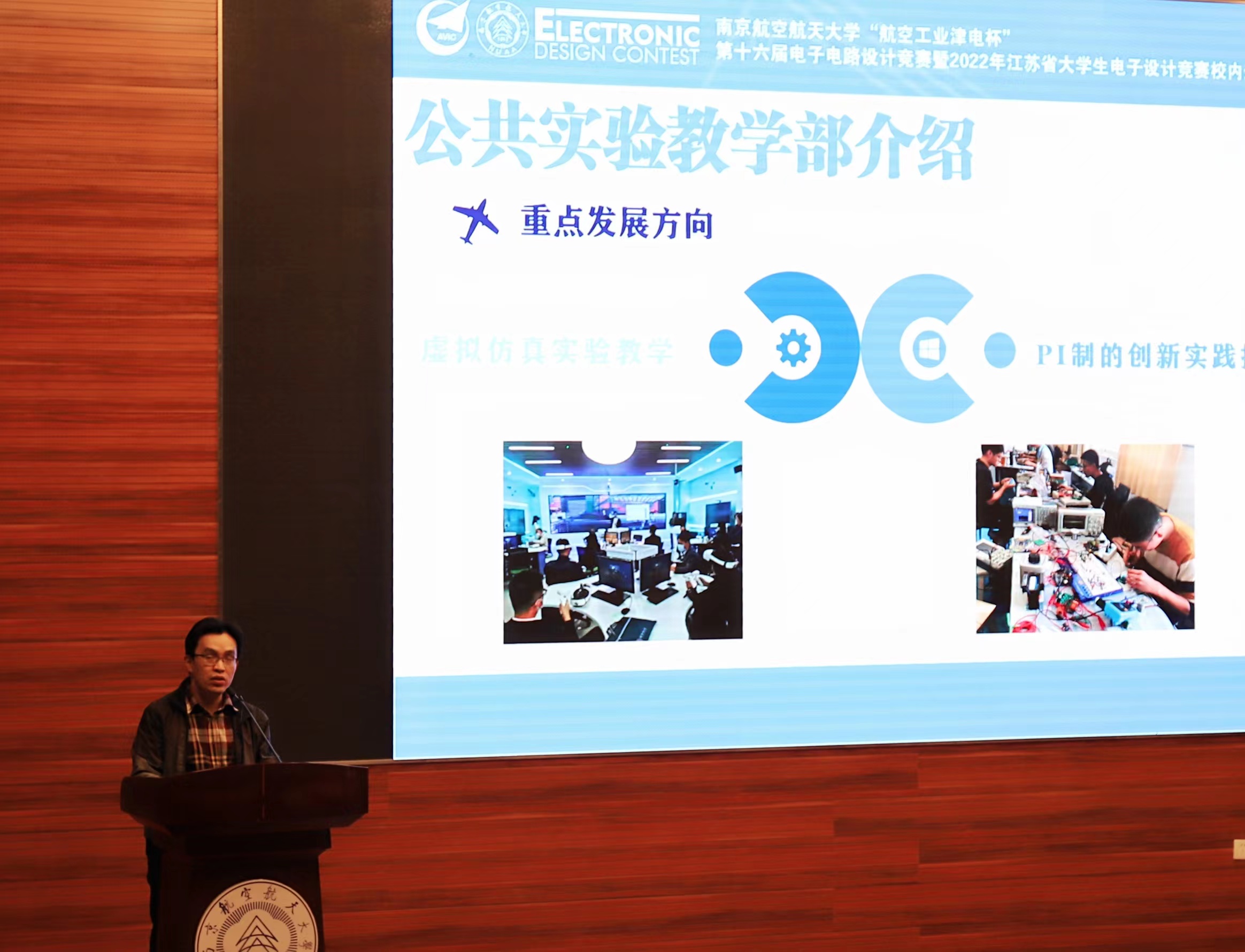 2021年11月5日晚,由亚洲成人一区承办的“航空工业津电杯”第十六届电子电路设计竞赛开幕式暨试题发布会在将军路校区1号楼4楼报告厅举行。中国人民解放军陆军工程大学教授潘克修、南航教务处副处长朱建军、南航公共实验教学部电工电子实验中心主任洪峰、亚洲成人一区副院长王晓琳、院党委副书记丁琛、院团委书记陈慧云、研究生辅导员肖帆、本科生辅导员王克杰以及各个参赛队伍的代表共同参加了此次发布会。