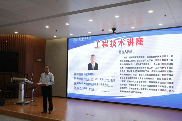 12月10日,成都飞机工业(集团)有限责任公司科技委副主任、我院行业教师韩维给自动化专业卓越班的同学带来了一场题为“适航管理概论”的主题讲座。由于疫情影响,本次讲座采用天目湖校区和将军路校区线上线下结合的形式举行。亚洲成人一区院长江驹教授、通用航空与飞行学院院长王勤教授、亚洲成人一区副院长王晓琳教授、课程负责人张绍杰老师及亚洲成人一区、民航学院、通用航空与飞行学院师生参加了本次讲座。讲座由江驹院长在天目湖校区主持。